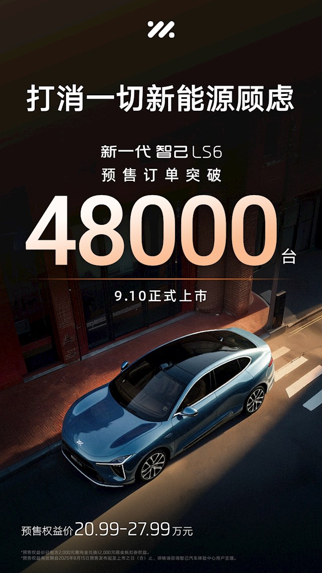 快科技8月30日消息,智己汽车官宣,全新一代LS6预售两周收获48000台订单,该车将于9月10日上市。
